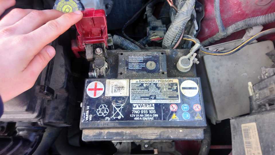 5. Поднимите защитную крышку клеммы «плюс» аккумуляторной батареи.