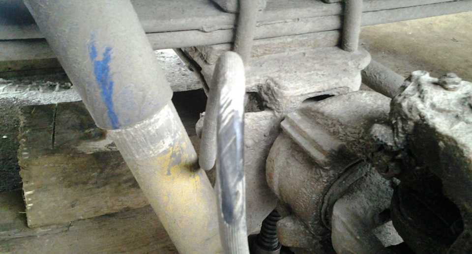 Правый тормозной шланг требует замены, терся о колесный диск еще у прошлого хозяина. Временно я подогнул крепление к мосту, но теперь нужно все сделать по уму.