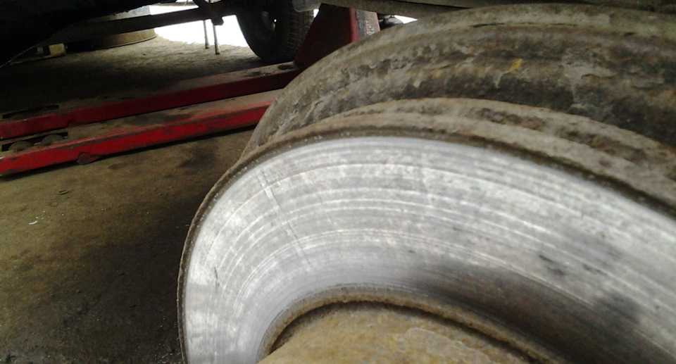 Левый тормозной диск с приличной выработкой, видать стал тормозить после прошлого ТО.