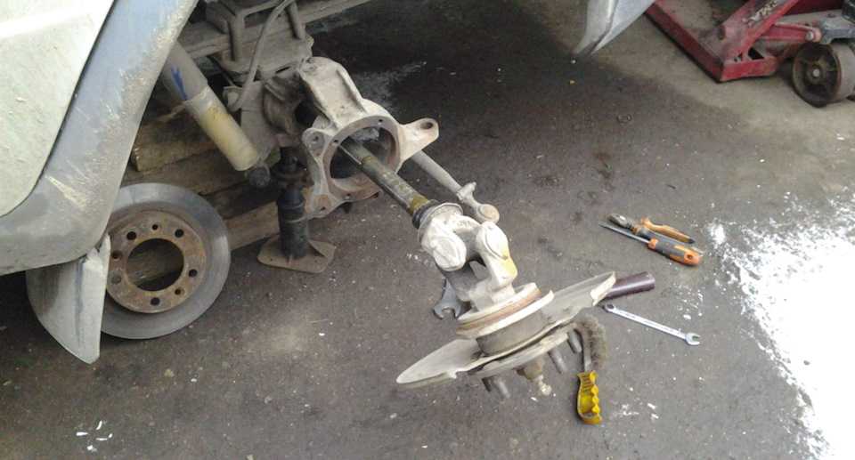Сделать пока удалось не много: скинул колеса да суппорта с дисками и вынул один привод.