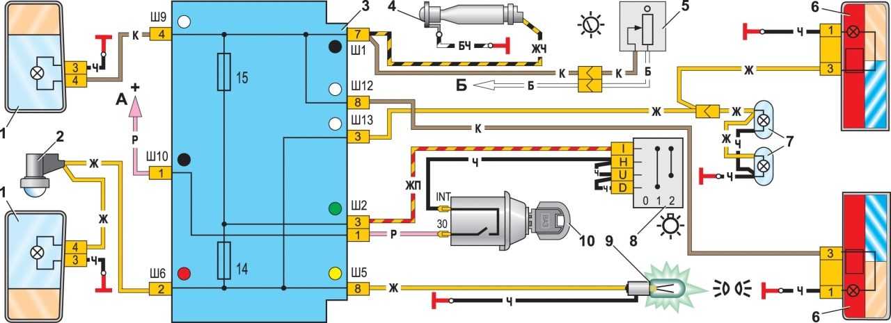 Для того чтобы избавиться от подобных проблем многие решают доработать процесс включения и отключения фар. Благодаря простейшим схемам фары могут включаться одновременно с зажиганием или в момент запуска двигателя. При этом с дневное время зажигаться будут фары ближнего света, но не габариты, а ночью все будет работать в привычном режиме. Рассмотрим оба варианта.