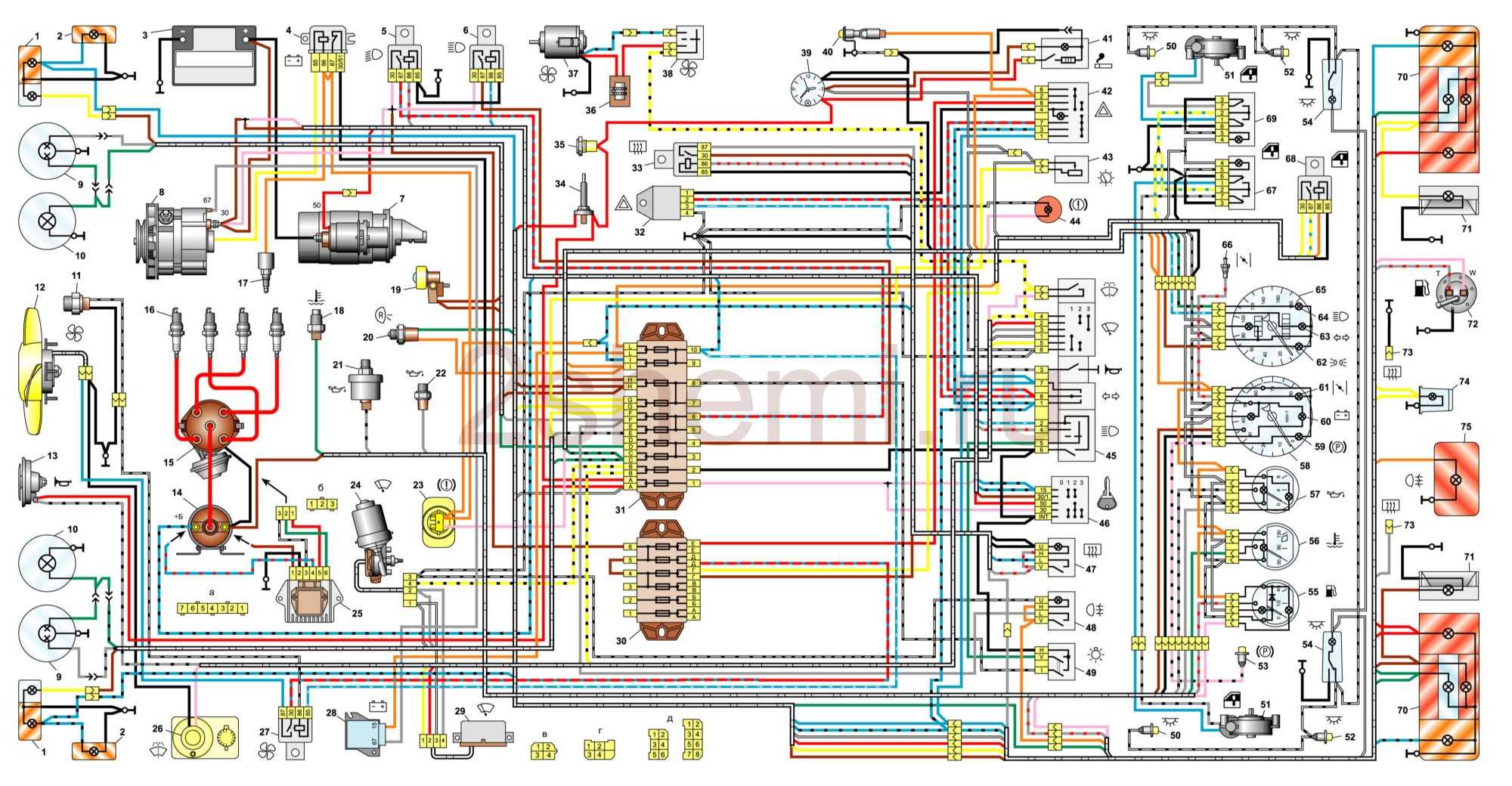 Общая схема электрооборудования ВАЗ 2106 / 21061 / 21063 / 21065 выпуска 1988 – 2001г.