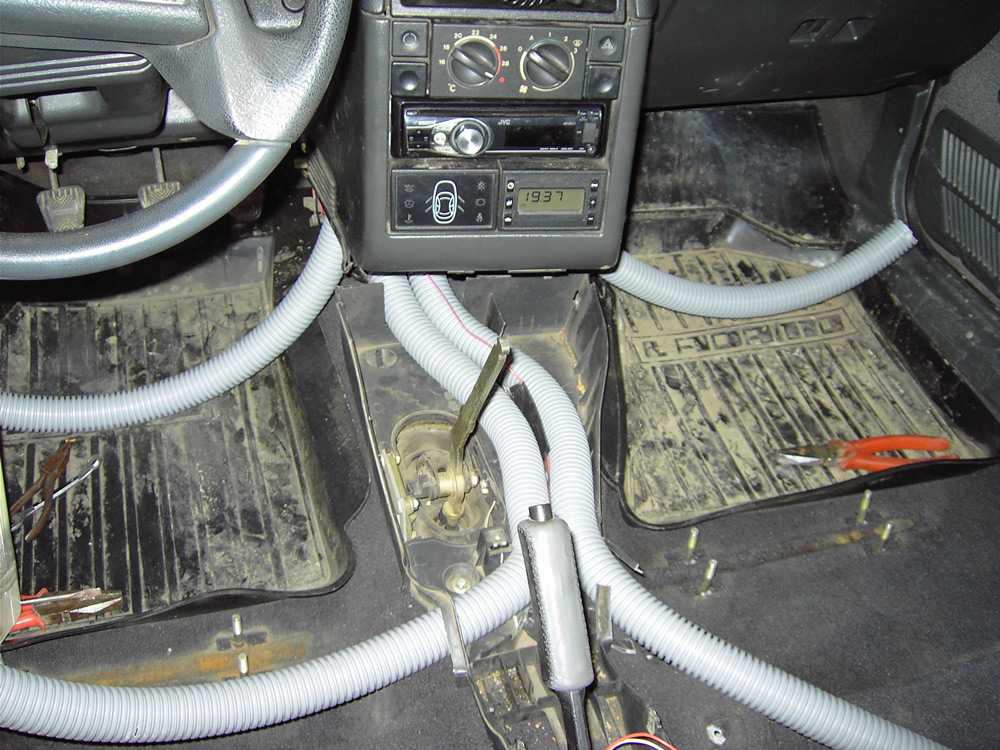 - в таком положении подсоединяем и фиксируем тросик крана отопителя;