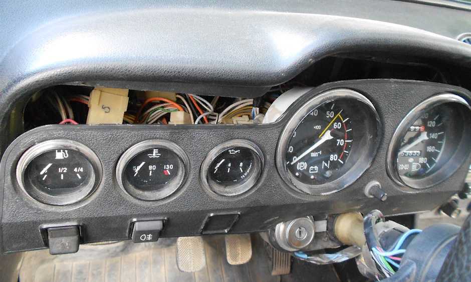 | 9 | 8 | Указатели поворота и соответствующая лампа сигнализатора, указатель давления масла с лампой сигнализатора, указатель температуры охлаждающей жидкости, лампы света заднего хода, указатель уровня топлива с лампой сигнализатора резерва, лампа сигнализатора включения стояночного тормоза и уровня тормозной жидкости, лампа сигнализатора заряда аккумуляторной батареи, электромагнитный клапан карбюратора, тахометр, лампа освещения вещевого ящика, сигнализатор приоткрытая воздушной заслонки карбюратора, обмотка реле обогрева заднего стекла |