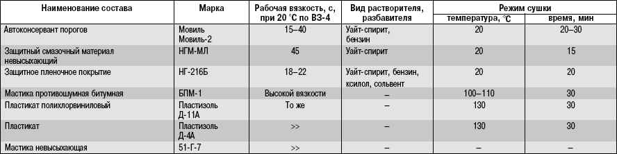 Таблица 11.1 Антикоррозионные составы для обработки кузова