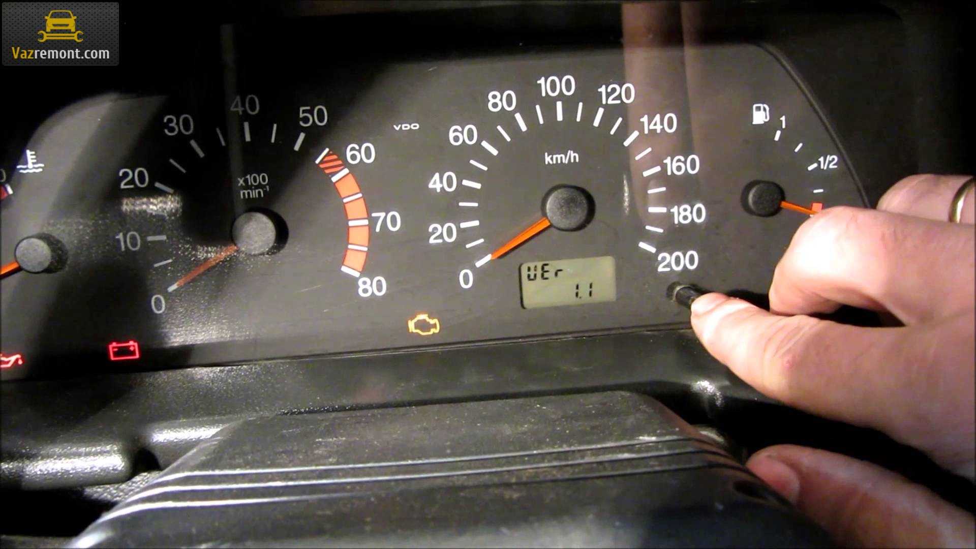 - Выключаем зажигание. Теперь зажимаем клавишу сброса суточного пробега, не отпуская кнопку запускаем зажигание Приоры 16 кл;