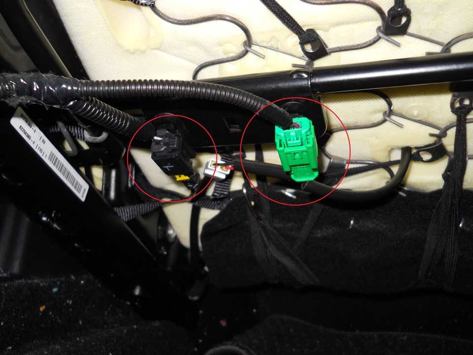 Изначально необходимо отключить все провода подходящие к сиденью, такие как подогрев сидений и индикатор не пристёгнутого ремня. Находим данные разъем под сидением и разъединяем их.