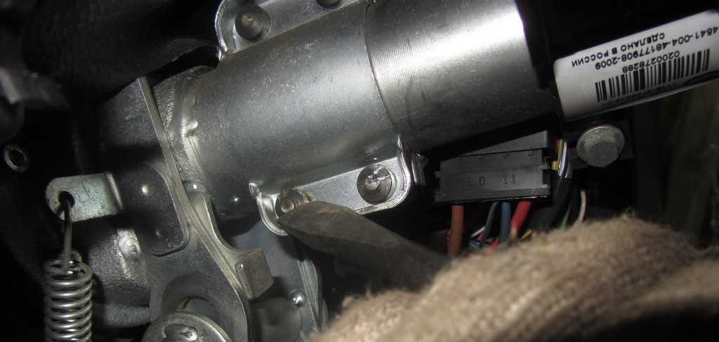 Сделав это, нужно будет также отключить штекер с проводами ЗЗ от разъема с проводкой системы управления иммобилайзером. Используя молоток с зубилом либо дрель, вам необходимо демонтировать четыре винта с отрывными шляпками и извлечь узел с рулевой колонки. Эти болты просто так выкрутить нельзя. Инженеры ВАЗ решили использовать такой метод установки ЗЗ для того, чтобы обезопасить автовладельцев от возможных угонов. Такой способ крепления, как вы можете догадаться, очень затрудняет демонтаж ЗЗ, поэтому на данном этапе придется повозиться. В любом случае, болты можно демонтировать или высверлить, но вместо них придется заранее приобрести новые.