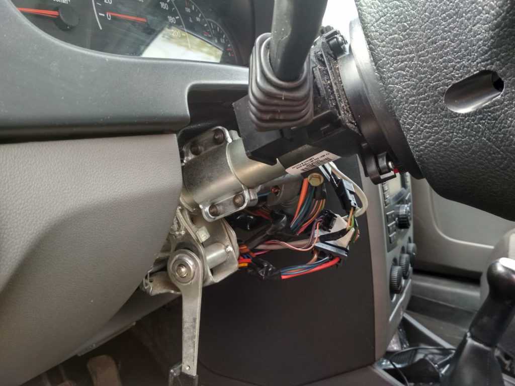Сначала отключите аккумулятор и демонтируйте пластиковый кожух рулевой колонки, который крепится при помощи болтов.