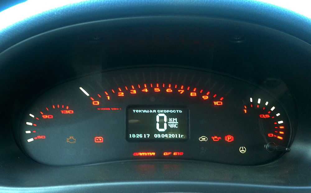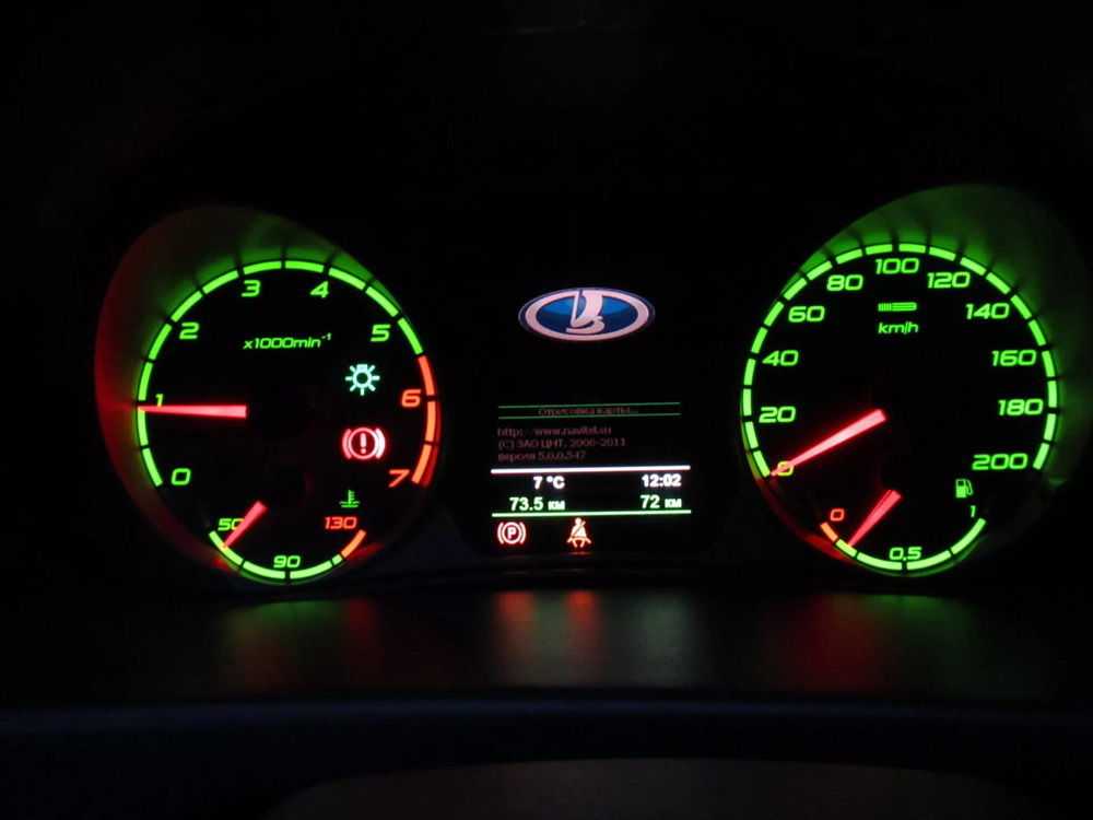 - Всего в щитке приборов на Приоре 5 ламп подсветки — 4 из которых по середине и одна подсвечивает нижний дисплей.