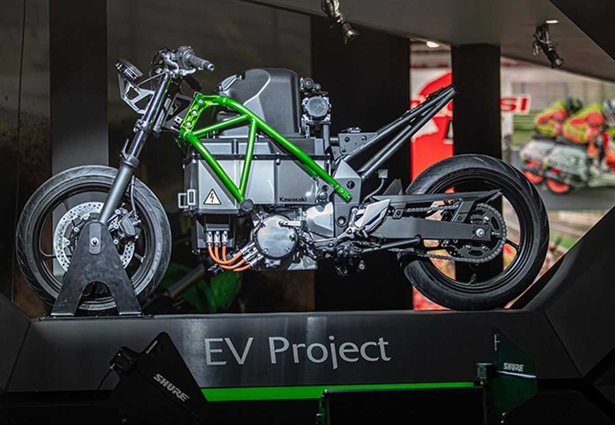 Kawasaki EV Project. Первый электромотоцикл улично-спортивного класса внешне напоминает Ninja 650 и обещает 100 км. пробега на полной зарядке. Здесь установлена механическая коробка передач, которая обеспечит хорошую управляемость и отзывчивость байка на действия пилота. Еще одна новинка, к которой причастен бренд Kawasaki – Bimota Tesi H2 2020. Купив часть акций итальянской компании, концерн поучаствовал в создании нового гипербайка.